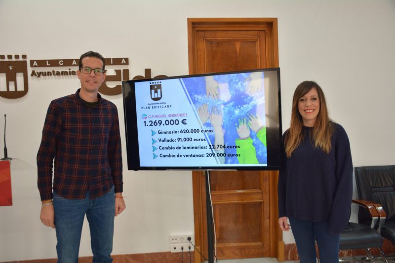 El alcalde de Elda, Rubén Alfaro, junto con la Concejala de Educación, Laura Rizo, ha anunciado las mejoras que se van a realizar en el Colegio Público Miguel Hernández dentro del proyecto del Plan Edificant.