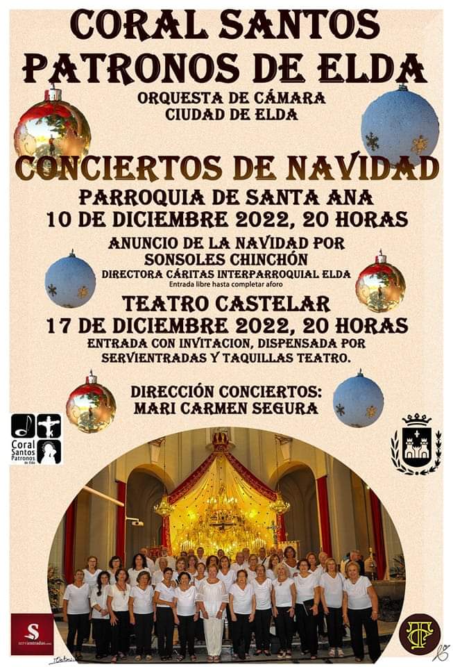 Juan Carlos Pastor ha indicado que el repertorio en los dos conciertos será el mismo, “con la diferencia de que en la actuación de este sábado se incluye la lectura del Anuncio de la Navidad, que este año correrá a cargo de Sonsoles Chinchón, directora de Cáritas Interparroquial Elda”.