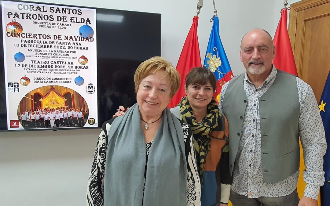 La concejala del Teatro Castelar, Rosa Vidal, ha presentado esta mañana los Conciertos de Navidad que la Coral de los Santos Patronos y la Orquesta de Cámara Ciudad de Elda ofrecerán los días 10 y 17 de diciembre. El primero de los recitales tendrá lugar este sábado a las 20.00 horas en la Parroquia de Santa Ana y el segundo, a la misma hora, en el Teatro Castelar.