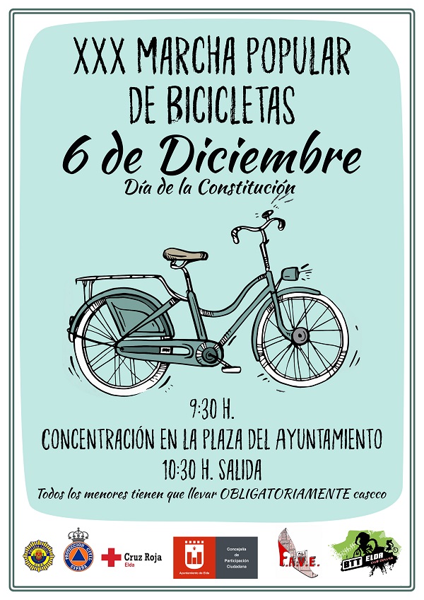 La Federación de Asociaciones de Vecinos de Elda (FAVE) ha organizado, un año más, su Marcha Popular de Bicicletas para celebrar el Día de la Constitución, el 6 de diciembre.