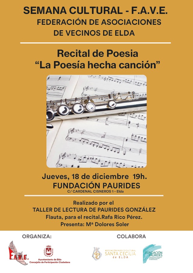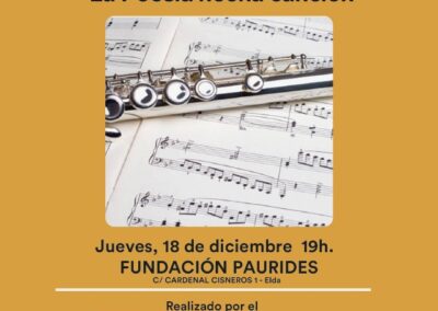 • Jueves, 18 de diciembre. Recital de poesía en colaboración con el Taller de Lectura Paurides: ‘La poesía hecha canción’.