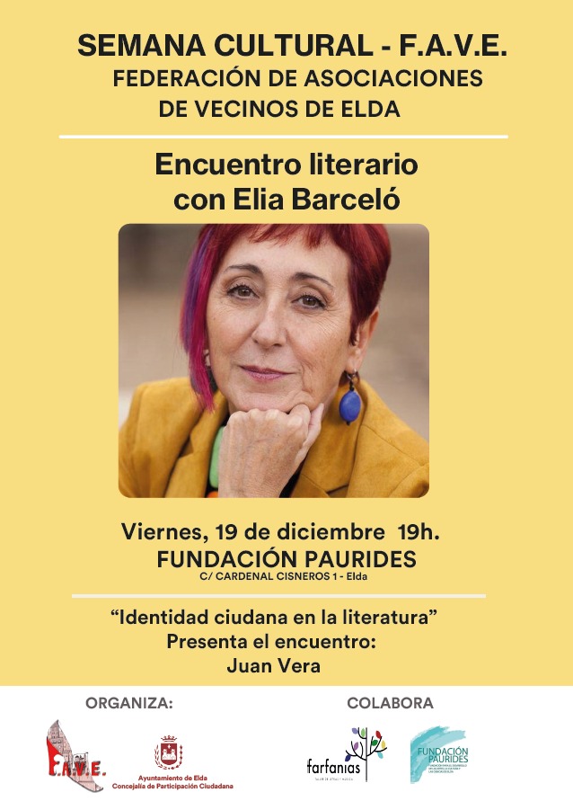 • Viernes, 19 de diciembre. Encuentro literario con Elia Barceló y charla coloquio: ‘Identidad ciudadana en la literatura’.