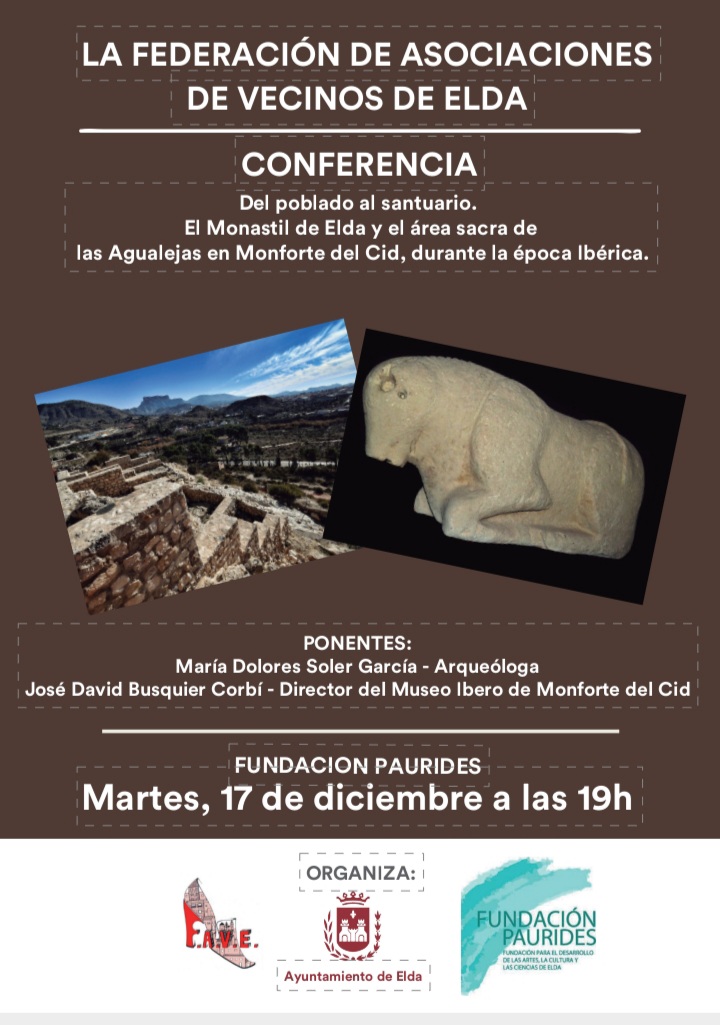 La actividad comienza mañana por la mañana con una visita guiada al yacimiento arqueológico de El Monastil y por la tarde una visita al Museo Íbero de Monforte del Cid. Para concluir, el martes 17 de diciembre, a las 19:00 horas, tendrá lugar en la Fundación Paurides una conferencia titulada ‘Del poblado al santuario. El Monastil de Elda y el área sacra de las Agualejas en Monforte del Cid durante la época Ibérica’.