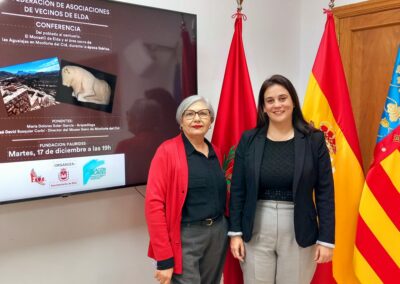La Federación de Asociaciones de Vecinos de Elda (FAVE) ha organizado una visita guiada al yacimiento arqueológico de El Monastil y una conferencia sobre los orígenes de la ciudad para completar su programa de actividades del año 2024. Así lo han anunciado la concejala de Participación Ciudadana, Lorena Pedrero, y la presidenta de FAVE, María Salud Corbí.