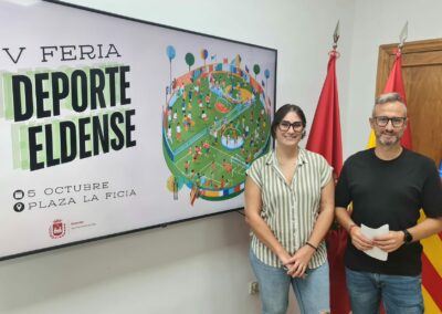 Por su parte, José María Martínez ha explicado que «todas las entidades y clubes deportivos interesados deben dirigirse al correo electrónico cdeportes@elda.es antes del 1 de octubre para comunicar que desean participar en la Feria. Vamos a pasar una mañana muy divertida con actividades que permitirán conocer la gran cantidad de deportes que se practican de manera federada en nuestra ciudad. Es un evento que también tiene un carácter familiar porque permite que los niños y niñas de Elda conozcan todas las opciones que tienen para practicar deporte».