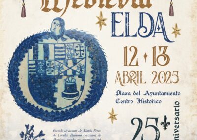 La Feria de Comercio Medieval de Elda celebra este año su 25 aniversario con una edición repleta de animación, ambientación, espacios de exposición, actividades lúdico-educativas, exposiciones, puestos de venta, espacios gastronómicos y varias sorpresas. El evento, organizado por el Ayuntamiento de Elda, a través de la Concejalía de Comercio y Mercados, y la Asociación Pirámide Art, se desarrollará los días 12 y 13 de abril en las calles y plazas del Centro Histórico de la ciudad.