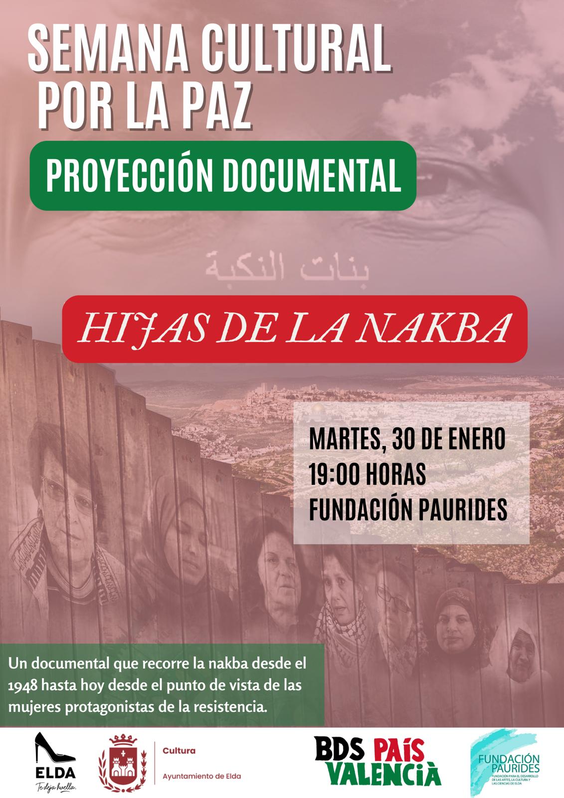 La Concejalía de Cultura del Ayuntamiento de Elda, dentro de la programación organizada dentro de la Semana Cultural por la Paz, ofrecerá el próximo martes a las 19.00 horas en la Fundación Paurides la proyección del documental de la directora Estela Falastín ‘Hijas de la Nakba’, coincidiendo con el Día Internacional de la Paz y la No Violencia.