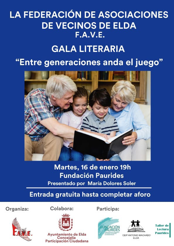 La Fundación Paurides acogerá el próximo martes una nueva edición de la Gala Literaria organizada por la Federación de Asociaciones de Vecinos de Elda (FAVE), una actividad que cumple su cuarta edición y que en esta ocasión llevará como título ‘Entre generaciones anda el juego’.