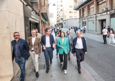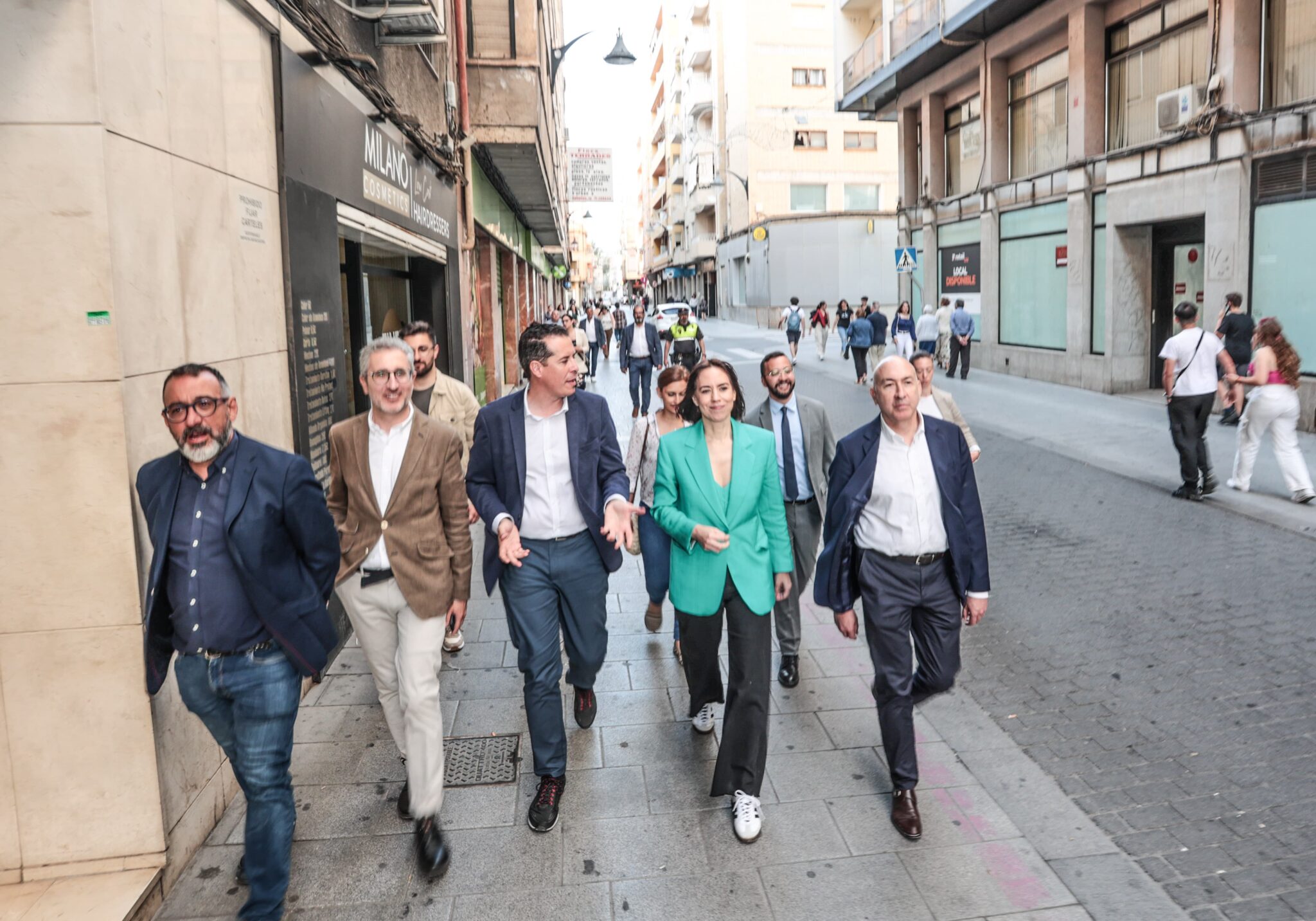 A continuación, la visita a Elda se ha completado con un recorrido por el Casco Antiguo de la ciudad que ha transcurrido por las inmediaciones de la iglesia de Santa Ana y la calle Ortega y Gasset, incluidas en la actuación que permitirá poner en valor el centro histórico de la ciudad y la creación de la ZBE; la calle Dahellos, donde se creará el Bulevar de la Mejor Calzada; la Plaza del Zapatero y el Jardín de la Música, que recientemente ha reabierto sus puertas.