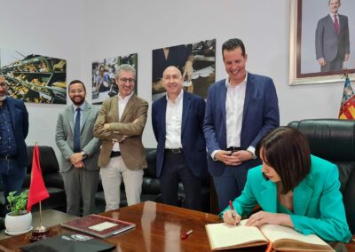 A continuación, el regidor eldense ha mostrado a la ministra la Vara de Mando de Azaña, que se expone de manera permanente en el vestíbulo de la Casa Consistorial, y le ha explicado el recorrido que siguió este símbolo del Gobierno de la Segunda República hasta recalar en Elda. Posteriormente, Diana Morant ha firmado en el Libro de Honor y ha recibido de manos del alcalde de Elda una réplica del acta original de la última sesión del Consejo Municipal, celebrada el 13 de marzo de 1939.