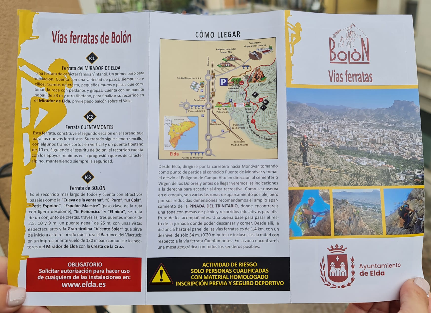 Además, todas las personas interesadas en las Vías Ferratas de Bolón pueden dirigirse a la Oficina de Turismo, situada en la Calle Nueva, 14, donde les facilitarán toda la información, así como un tríptico editado por la Concejalía de Turismo que incluye las diferentes vías, recorridos y servicios disponibles. Los interesados también pueden llamar por teléfono al 966 980 300 o escribir al correo electrónico elda@touristinfo.net