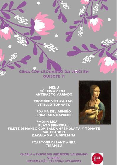 De esta manera, la primera actividad que presentan es una cena – charla sobre Leonardo Da Vinci el próximo 20 de junio a las 21:00 horas en el Restaurante Quijote 11, a cargo del profesor Valeriano Venneri. Asimismo, la elección de Da Vinci se ha realizado coincidiendo con el aniversario de los 500 años de su muerte.