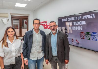 El alcalde de Elda ha enumerado algunas de las mejoras incluidas tanto en el servicio de limpieza viaria como en el de la recogida y transporte de residuos sólidos urbanos. Entre estas mejoras hay que destacar «que la recogida de contenedores de envases de papel y cartón se realizará cinco días a la semana, con refuerzos especiales en fechas señaladas. También se implanta un contenedor gris de resto junto a cada contenedor marrón de orgánica para mejorar la correcta separación y que el porcentaje de residuos impropios se reduzca paulatinamente».