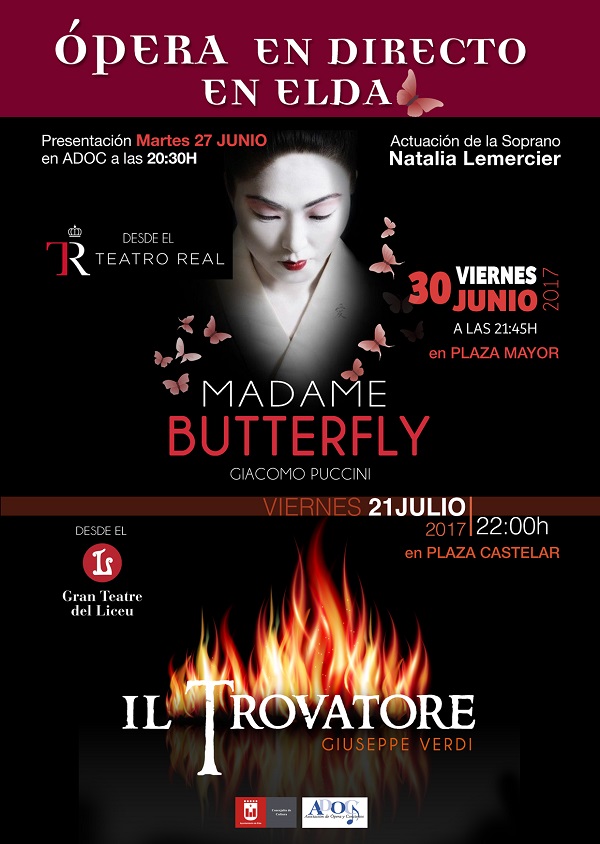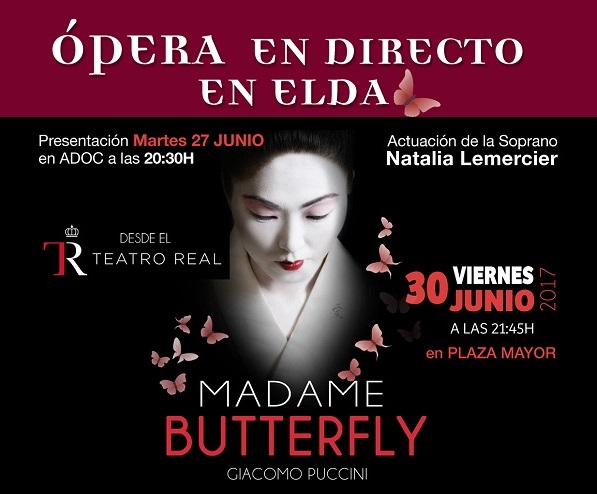 El programa de Ópera en la Calle comenzará el día 27 de junio a las 20.30 horas con la proyección del documental emitido por TVE en su ciclo This is Opera en ADOC donde podremos conocer el argumento de la obra Madama Butterfly. Dicha presentación contará con la actuación de Natalia Lemercier, soprano argentina, y el pianista del ilicitano Manuel Ramos.
