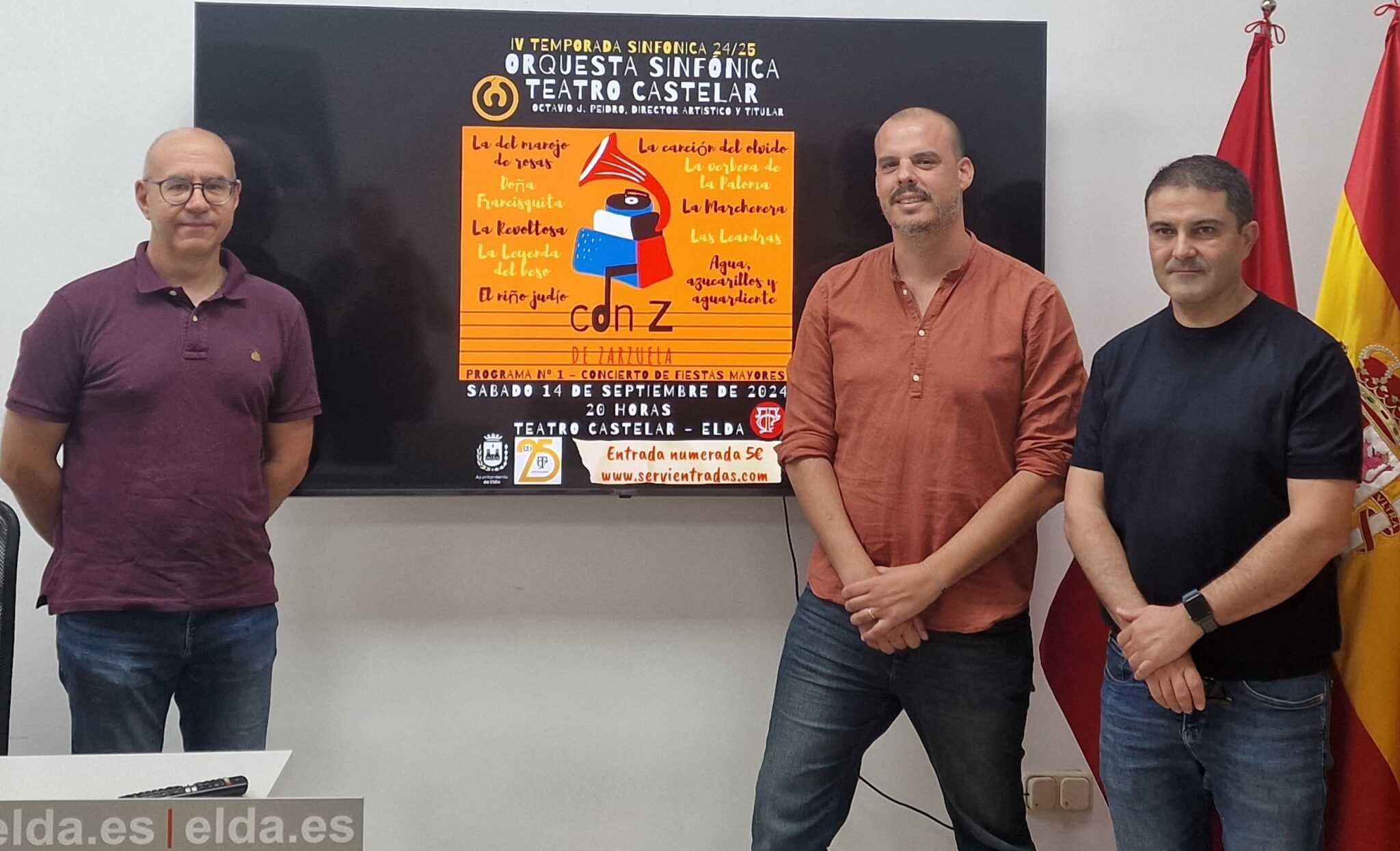 La Orquesta Sinfónica del Teatro Castelar (OSTC) retoma su calendario de conciertos y ayer presentado la que será su IV Temporada Sinfónica que, bajo el nombre de ‘Paisajes sonoros’, ofrecerá un recorrido por diferentes géneros musicales. El concejal de Cultura, Iñaki Pérez, acompañado por el presidente de la OSTC, Rafael Rico, y el gerente de la misma, Pedro Herrero.