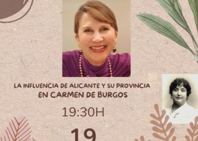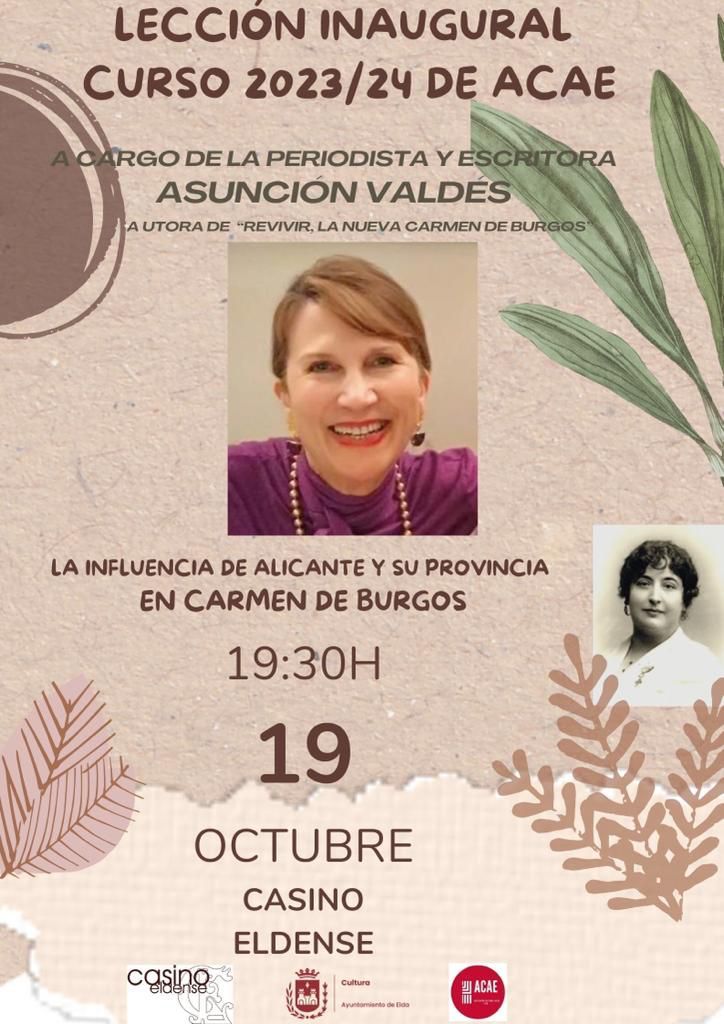 El acto, que tendrá lugar el próximo jueves a las 19.30 horas en el Casino Eldense y versará sobre la influencia de la provincia de Alicante en la obra de Carmen de Burgos