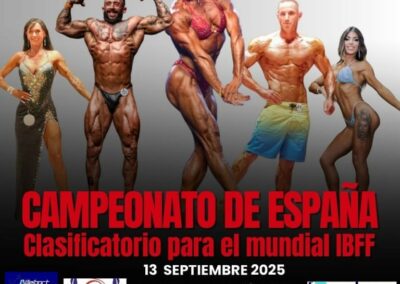 Las categorías en las que se competirá son: culturismo junior -23; culturismo peso ligero hasta 70 kilos; culturismo medio hasta 80 kilos; culturismo semipesado hasta 90 kilos; culturismo pesado hasta 100 kilos; culturismo super pesado + 100 kilos; culturismo master + 40, + 50, + 60 años; Mr. Athletic talla baja -1.77 cm; talla alta +1,77 cm y Máster + 40 años; Clasicc Physique talla baja -1,77 cm; talla alta +1,77 cm; Mens Physique Junior; Mens physique talla baja -1,77 cm; talla alta +1,77 cm; Men,s Physique Master +30 y + 50 años; Men’s Short; Miss Bikini Junior -23 años; Miss Bikini talla baja -1,68 cm; talla alta +1.68 cm; Miss Bikini Master +40 años; Miss Wellness Junior -23 años; Miss Wellness hasta 40 y + 40 años; Miss Fitness Model hasta 40 y + 40 años; Miss Figura hasta 40 y + 40 años; Miss Sport Model; culturismo femenino, parejas y fisicoculturistas con discapacidad.