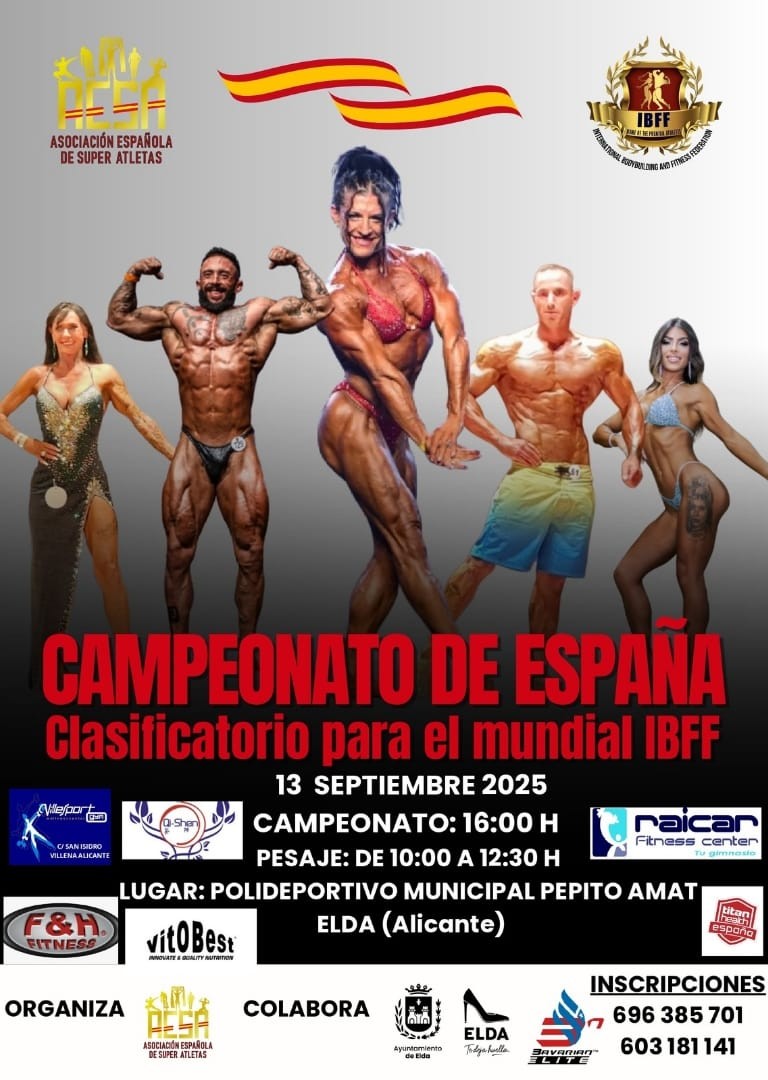 La Pista Azul acogerá el próximo sábado, 13 de septiembre, el Campeonato de España IBFF de fisicoculturismo, organizado por la Asociación Española de Super Atletas (AESA) y que será clasificatorio para el Campeonato del Mundo. Así lo ha anunciado esta mañana el concejal de Deportes, Enrique Quílez, quien ha estado acompañado durante la presentación por el presidente de AESA, Manuel Callau, y por la eldense Mar Ortega Palao, dos veces campeona del Mundo y vicepresidenta de AESA.