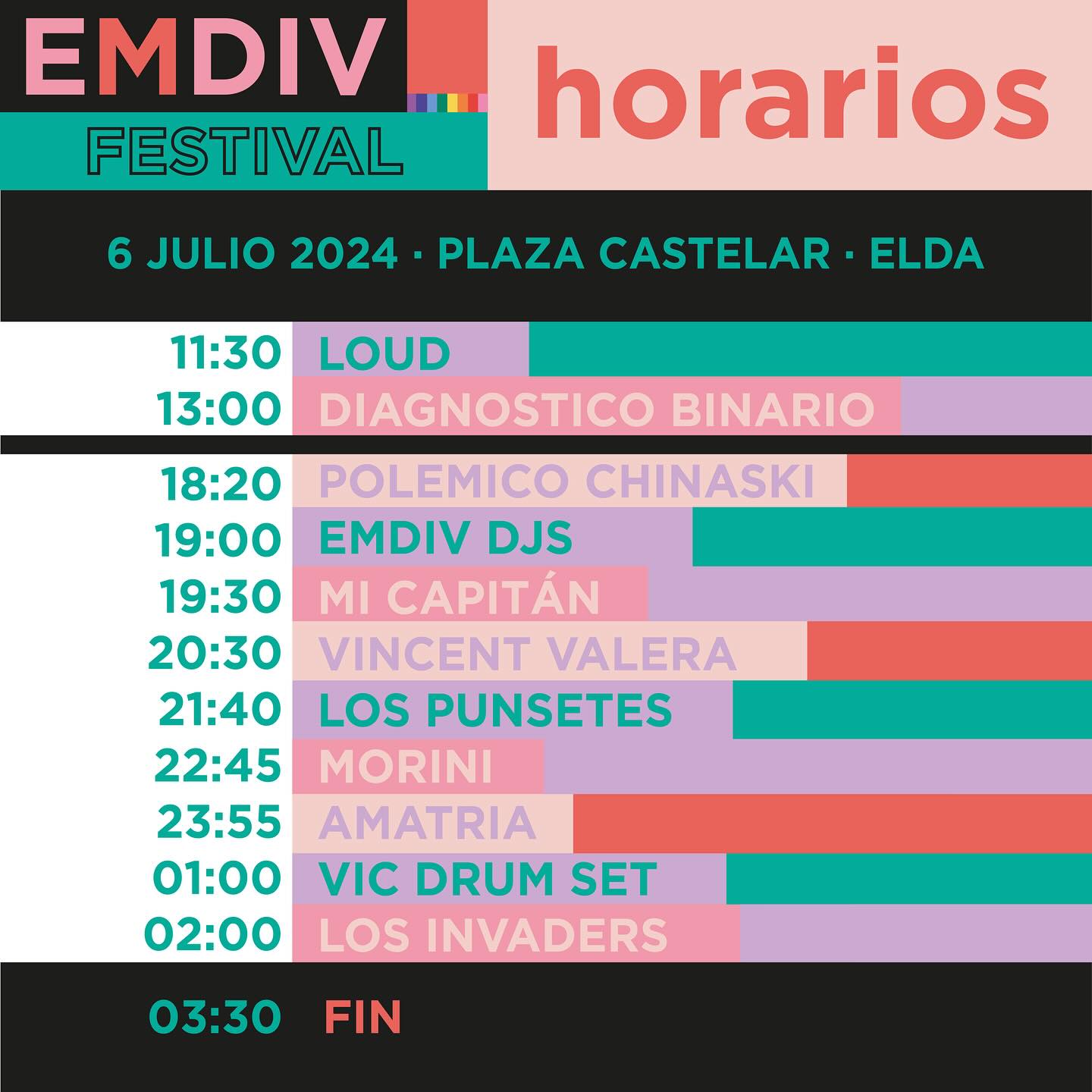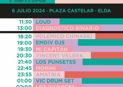 Hay que recordar que el cartel del festival está encabezado por Amatria, Los Punsetes, Diagnóstico Binario, Los Invaders, Loud, Mi Capitán y Polémico Chinaski. Además, también participarán DJs como Morini, Vic Drumset y Vincent Valera.