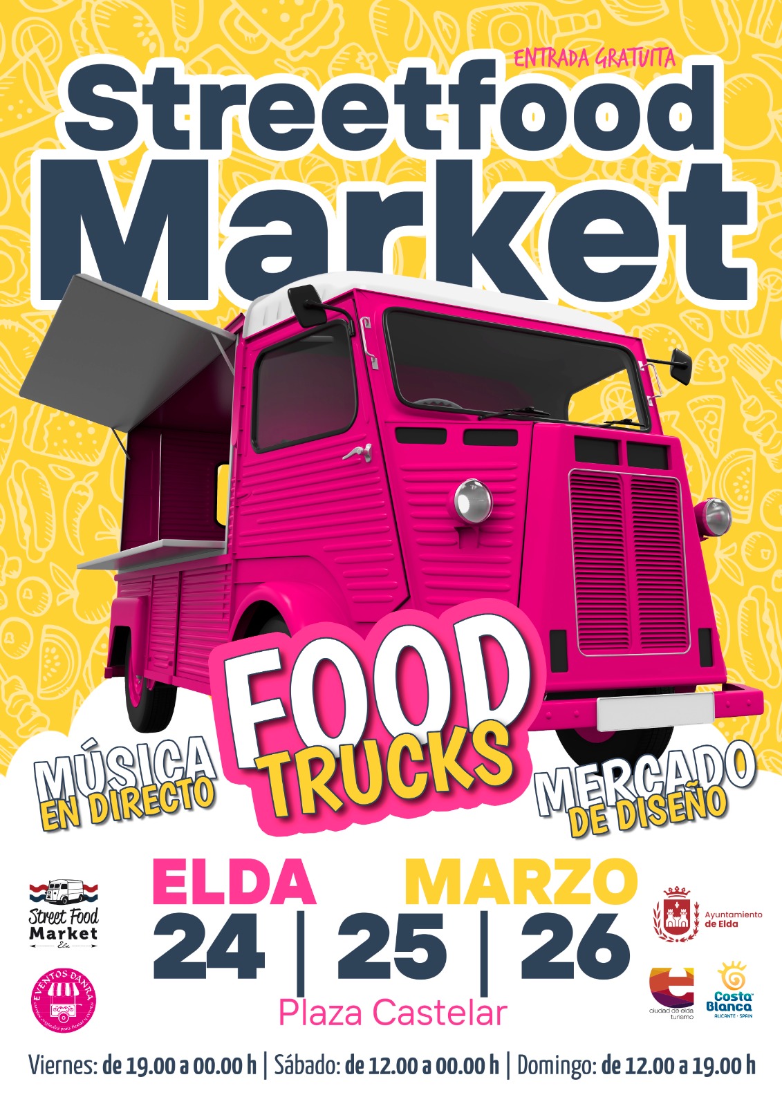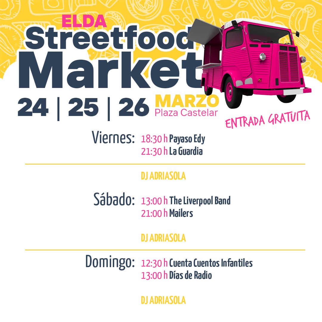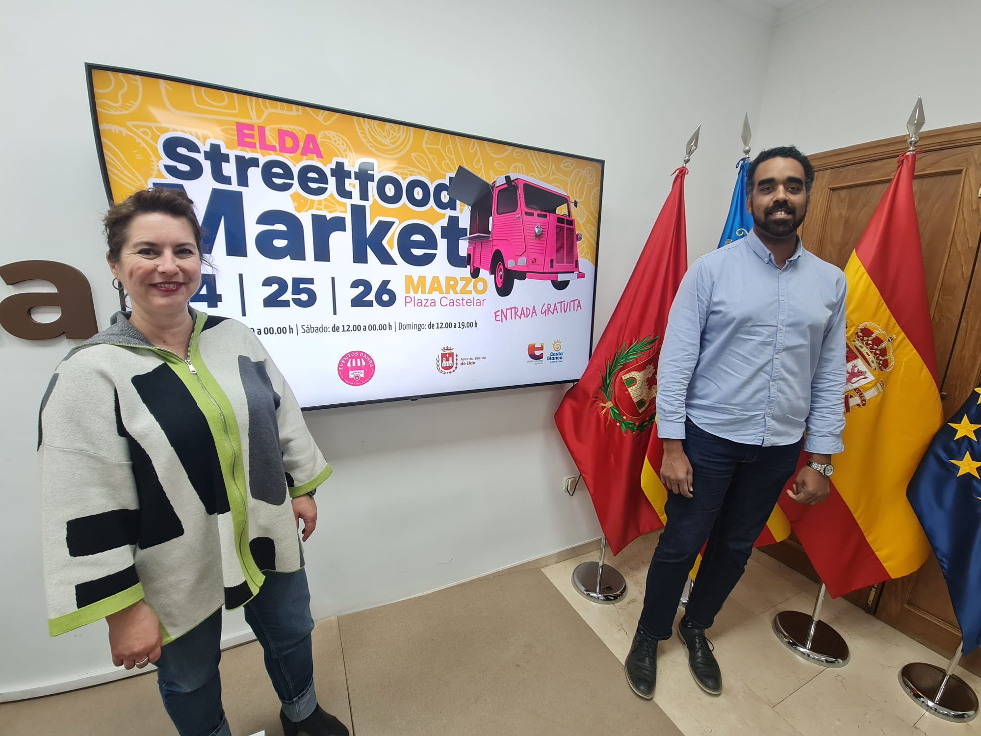 La Plaza Castelar acogerá del 24 al 26 de marzo una nueva edición del Elda Street Food Market, un evento que ofrecerá actuaciones musicales, humor y gastronomía de diferentes países. Rosa Vidal, concejala de Turismo, y Amadou José Sow, en representación de la empresa organizadora, han dado a conocer los detalles de un mercado que este año alcanza su séptima edición.