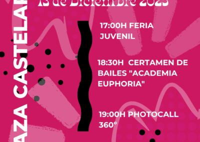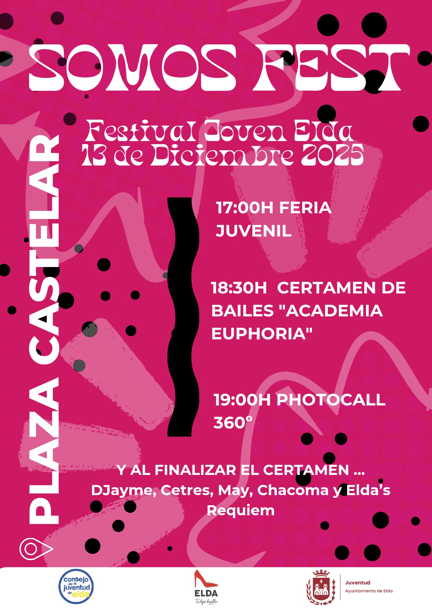 Somos Fest comenzará a las 17:00 horas con la apertura de la feria de asociaciones juveniles, en la que participarán una decena de colectivos de la ciudad, y continuará a las 18:30 horas con una exhibición de baile a cargo de jóvenes talentos de la escuela Euphoria. De 19:00 a 21:00 horas se pondrá en marcha Photocool 360°, una experiencia divertida para inmortalizar el momento y compartirlo en redes sociales.