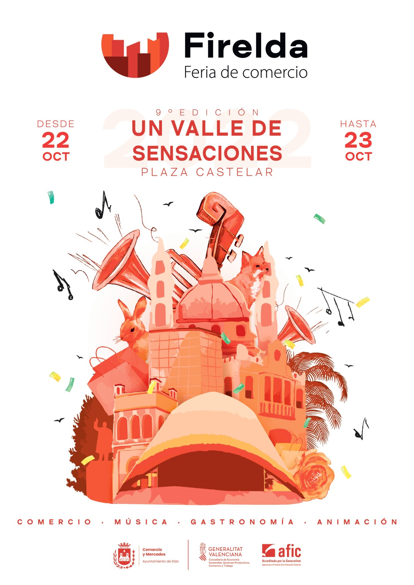 Firelda se dividirá en cuatro áreas, música, gastronomía, comercio y animación. “Cada una de estas áreas se deja inspirar por la fauna y flora local para ofrecer toda una experiencia multisensorial”, ha explicado Ibáñez. El escenario de la Plaza Castelar y los alrededores se vestirán de gala para la ocasión y en el escenario habrá actuaciones de grupos y DJ’s.