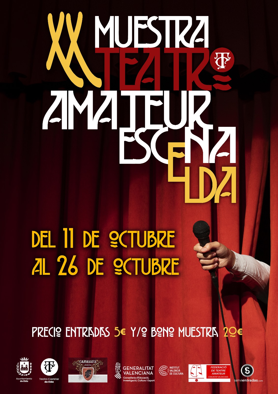 El Teatro Castelar acogerá los fines de semana del 11 al 26 de octubre la Muestra de Teatro Amateur ‘Escena Elda’, que este año cumple su edición número 20, consolidado ya como uno de los certámenes más importantes del panorama teatral amateur. Este año se han recibido un total de 102 obras, de las que han sido finalmente seleccionadas cinco. Las propuestas han llegado de toda España y este año, como curiosidad, se ha recibido una obra de una compañía de Argentina.