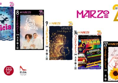 La segunda propuesta del mes de marzo llegará el viernes 8, Día Internacional de la Mujer, a las 20.00 horas, de la mano de Elena Donzel y Mari Marcos, dos actrices habituales en los circuitos de comedia de la Comunidad Valenciana. ‘Charlas de azucarillo’ cuenta la historia de Consuelo y Socorro, quienes guían al público durante su actuación en lo que supuestamente es un viaje de sanación, superación y renacimiento personal. Con su empresa de asesoramiento, ayudan a la gente a volver a la felicidad y la paz interior. Saben que su público ha sido devastado por una sucesión de golpes en la vida, por ello, con su conferencia motivacional, una mezcla entre la posmodernidad y la más antigua tradición, ilustran, en clave de humor, las herramientas para conseguir una vida «plena». La entrada es con invitación.