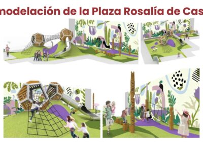 El proyecto también contempla la creación de espacios para las familias y para la convivencia, con nuevas áreas de juegos infantiles, seguras, modernas e inclusivas, y la creación de espacios para actividades biosaludables, que fomenten estilos de vida más activos. Uno de los grandes atractivos será una gran zona de juegos infantiles diseñados e integrados en la misma plaza, jugando con los volúmenes del terreno para que se integren en los propios juegos.