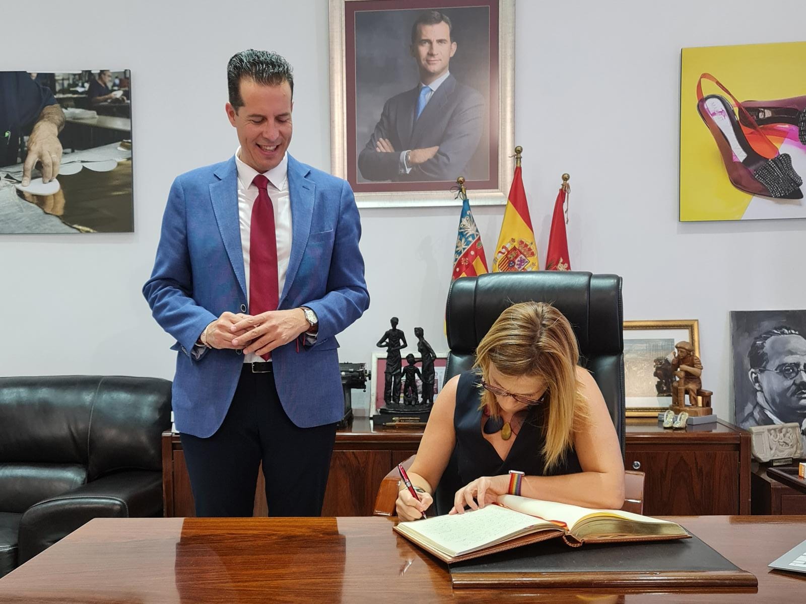 Antes de este acto de apertura de la plaza, la delegada del Gobierno ha visitado el Ayuntamiento de Elda, donde el regidor eldense le ha mostrado la vara de mando de Manuel Azaña y a continuación ha firmado en el Libro de Honor de la ciudad.