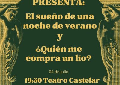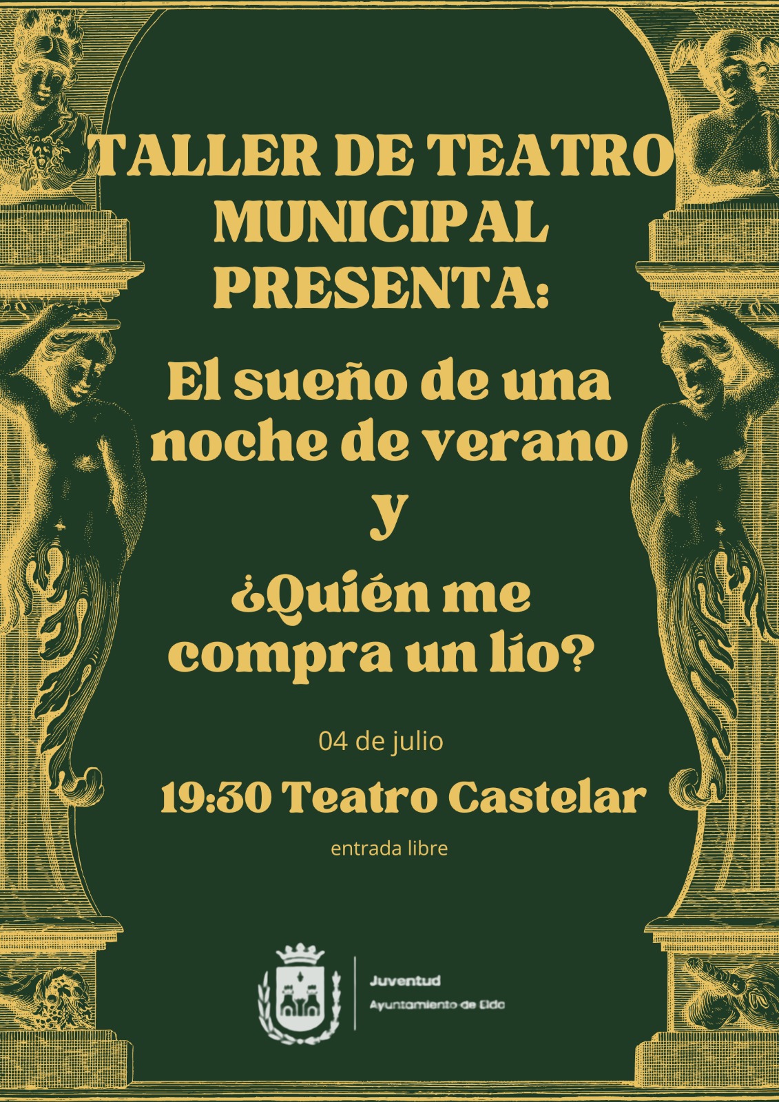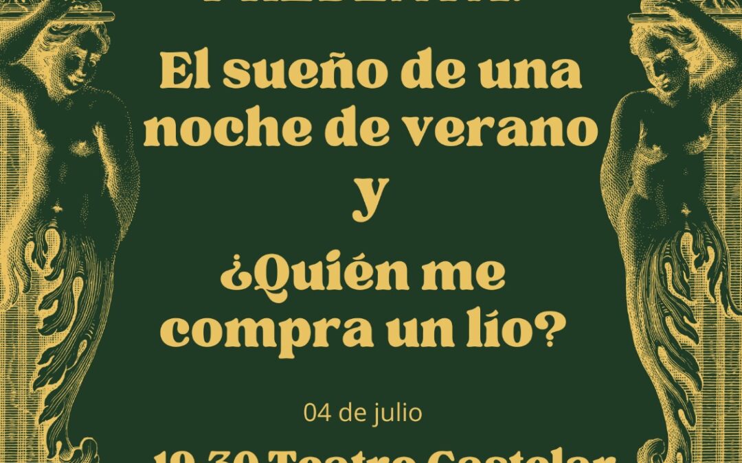 El Teatro Castelar acogerá el próximo jueves, 4 de julio, la representación de dos obras de teatro con motivo de la finalización del curso del Taller de Teatro Municipal. Se trata de la comedia de William Shakespeare, ‘El sueño de una noche de verano’, que los alumnos y alumnas más jóvenes han preparado durante el curso. El acceso del teatro será gratuito.
