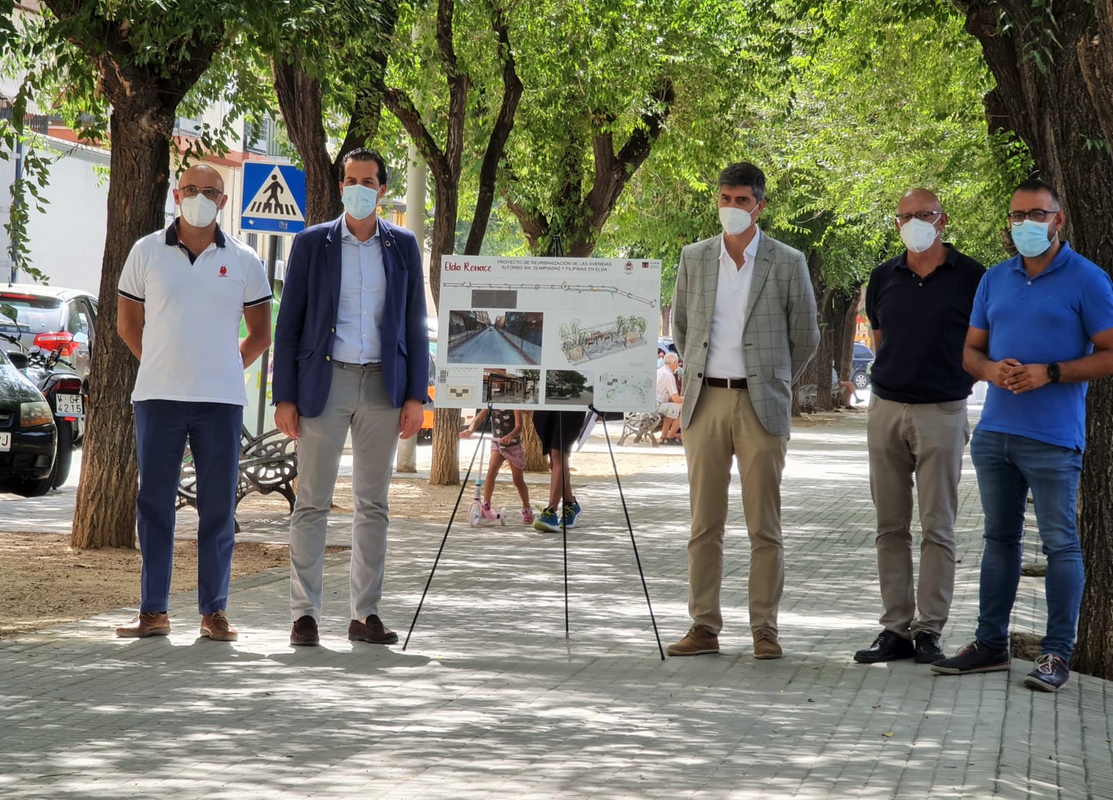 El Ayuntamiento de Elda ha presentado hoy el proyecto de reurbanización del eje formado por la Avenida Alfonso XIII, Avenida de las Olimpiadas y Avenida Filipinas. El alcalde de Elda, Rubén Alfaro, acompañado del edil de Servicios Públicos Sostenibles, José Antonio Amat, del ingeniero municipal, Matías Amat, y de Bernardo Martínez, ingeniero de caminos que se ha encargado de redactar el proyecto.