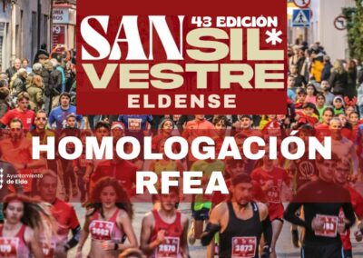 La San Silvestre Eldense, que el próximo 31 de diciembre celebrará su edición número 43, formará parte a partir de este mismo año del calendario nacional de la Real Federación Española de Atletismo (RFEA). El concejal de Deportes, Enrique Quílez, acompañado por la presidente de la Federación de Atletismo de la Comunidad Valenciana y vicepresidenta de la RFEA, María José Orugo, ha anunciado que ya se ha tramitado la solicitud de homologación del circuito urbano en el que se desarrolla la prueba.