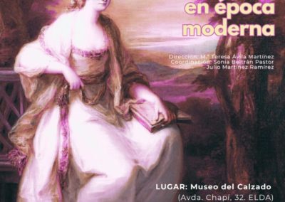 Día 15 de septiembre de 2023, de 17:45 a 20:00 horas. LUGAR: Museo del Calzado. (Avda. Chapí, 32. ELDA). Entrada libre hasta completar aforo Dirección: M.ª Teresa Ávila Martínez Coordinación: Sonia Beltrán Pastor y Julio Martínez Ramírez. Intervienen: M.ª Teresa Ávila Martínez (Universidad de Alicante–Universidad Complutense de Madrid) y Rosario Navalón García (Directora en funciones de la Sede en Elda de la Universidad de Alicante); Rafael Corona Verdú (Universidad de Alicante); Irene Fernández Sáez (Universidad Complutense de Madrid) y Aitana Finestrat Martínez (Universidad Autónoma de Barcelona).