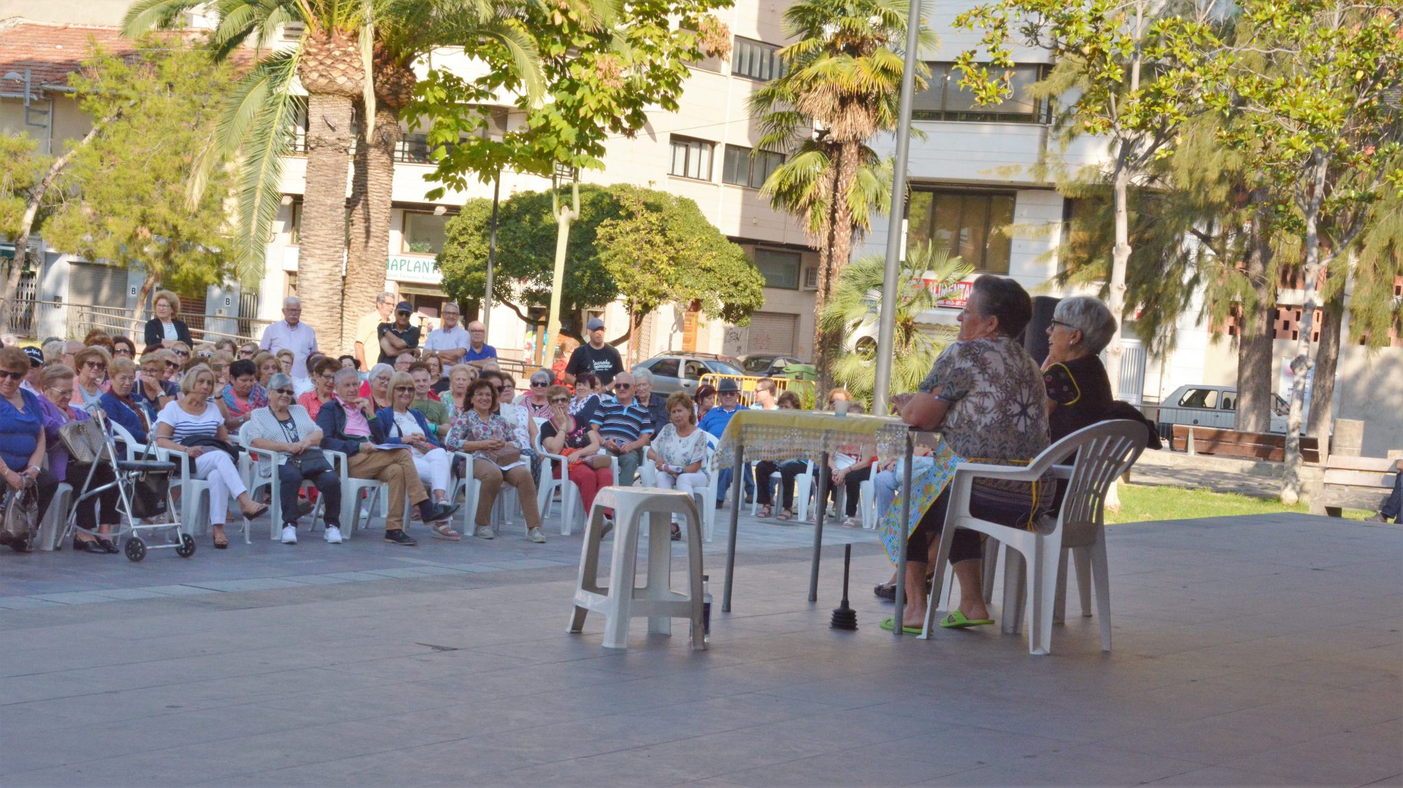 La Semana del Mayor, organizada por la concejalía de Servicios Sociales junto a la Federación de Clubes de la Tercera Edad de Elda y los diferentes clubes de jubilados locales, ha comenzado esta mañana con una chocolatada en la Plaza Castelar, donde a continuación se ha representado una obra de teatro que ha provocado las carcajadas del centenar de personas que se dieron cita en la conocida plaza eldense.