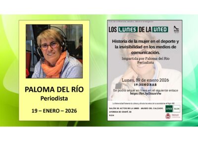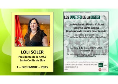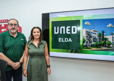 La concejala de Relaciones con la Universidad, Elizabeth Belda, y el coordinador de la UNED en Elda, José Manuel Guardia, han presentado hoy la programación del curso 2025/26 de la UNED de Elda. que incluye las conferencias de ‘Los lunes de la UNED’, que alcanzan ya su séptima edición. Algunos de los ponentes serán Paloma del Río, Felipe Mejías o César García. Todas las conferencias tendrán lugar en el salón de actos del Museo del Calzado y darán comienzo a las 19:30 horas.