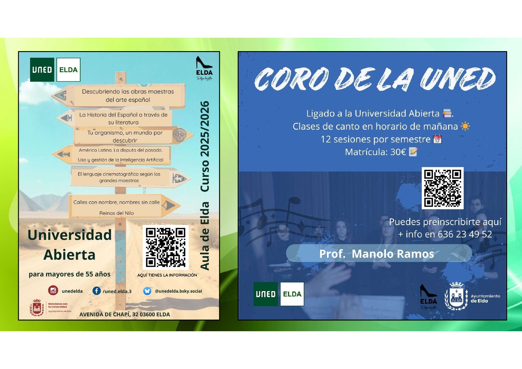 Por otra parte, este curso y dentro del programa Universidad Abierta habrá un coro bajo la dirección de Manolo Ramos, en horario de mañana. Las inscripciones están abiertas y la matrícula tiene un precio de 30 euros.