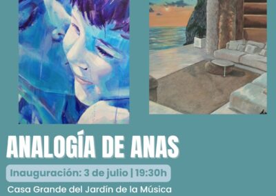 La Casa Grande del Jardín de la Música de Elda acogerá, del 3 al 25 de julio, la exposición ‘Analogía de Anas’, una propuesta artística que reúne el trabajo de Ana Sáez Romero y Ana Ortín Maestre. La inauguración tendrá lugar el miércoles 3 de julio a las 19:30 horas, momento en el que el público podrá conocer a las autoras y adentrarse en sus respectivos universos creativos.