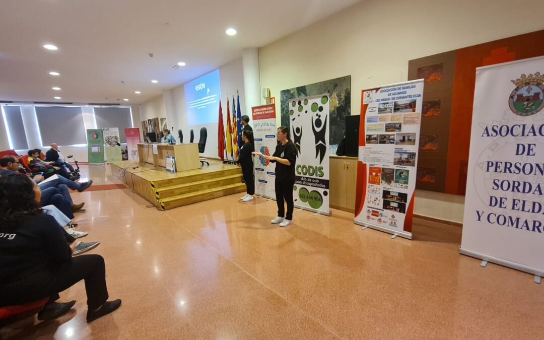 Las asociaciones participantes, que forman parte de la Comisión Especial de Trabajo para las Personas con Discapacidad de Elda, han comenzado el encuentro realizando en el salón de actos una breve exposición de la labor que realizan y de los recursos con los que cuentan.