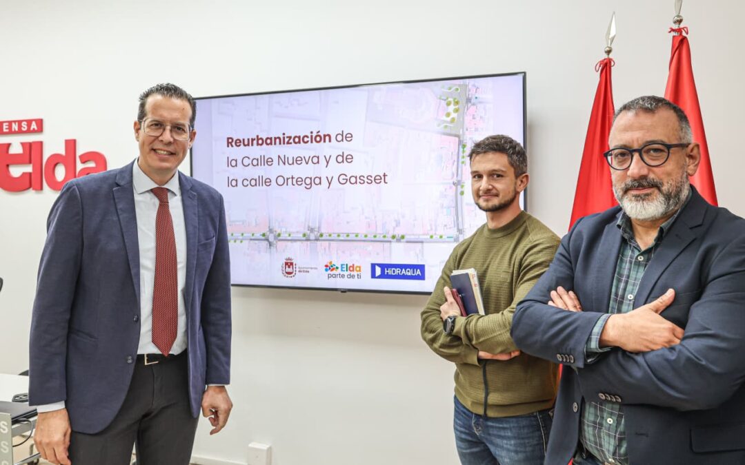 Los trabajos de reurbanización de la calle Nueva y de la calle Ortega y Gasset, una inversión incluida en el Plan ‘Elda parte de ti’ comenzarán en los próximos días, tal y como ha anunciado esta mañana el alcalde de Elda, Rubén Alfaro. El regidor eldense, acompañado por el concejal de Espacio Público e Inversiones, José Antonio Amat, ha destacado que con esta actuación «seguimos avanzando en la recuperación y puesta en valor del casco histórico de nuestra ciudad».
