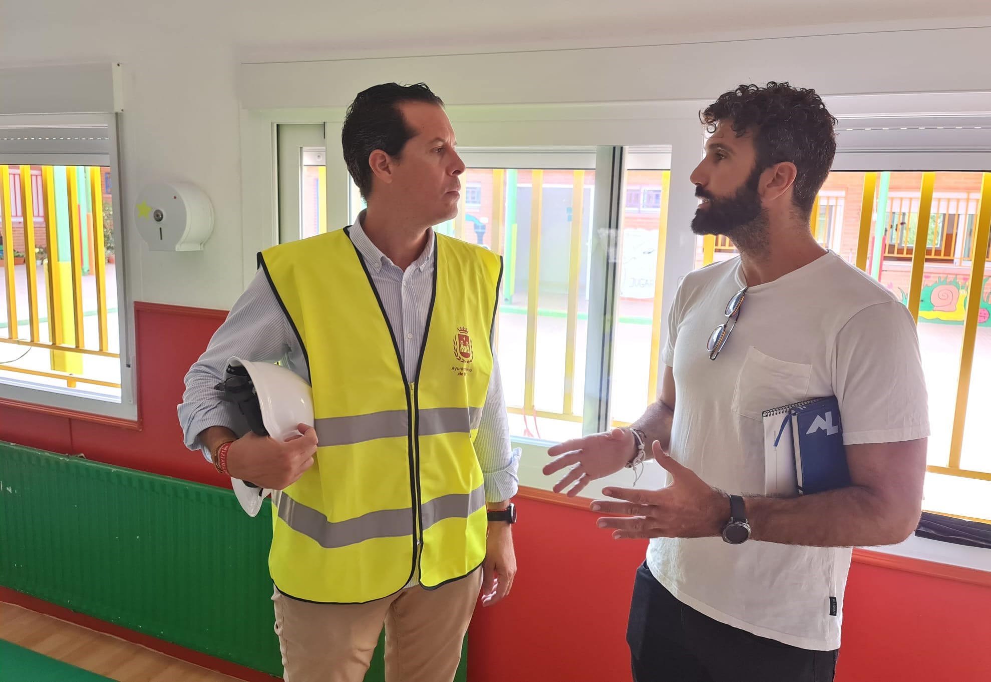 El alcalde de Elda, Rubén Alfaro, ha visitado hoy el centro educativo, donde se ha sustituido la carpintería exterior y la iluminación, se ha renovado un tramo del muro perimetral y se instalará en las próximas semanas un ascensor