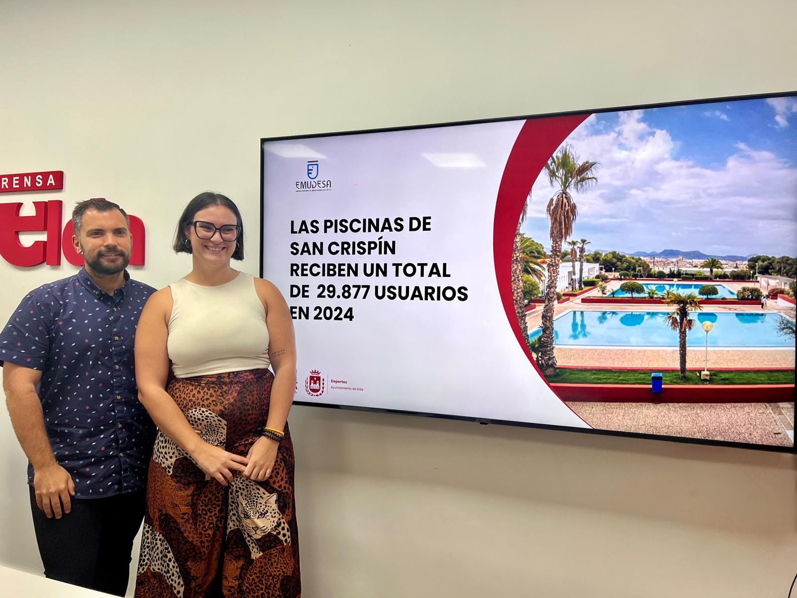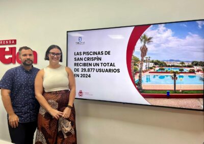 La concejala de Deportes, María Gisbert, y el director de Emudesa, Javier Rivera, han presentado esta mañana el balance de las Piscinas Municipales de Verano de San Crispín. Un total de 29.877 usuarios y usuarias han pasado este verano por unas instalaciones que han visito aumentar un 8,66% la afluencia de público con respecto al verano de 2023.