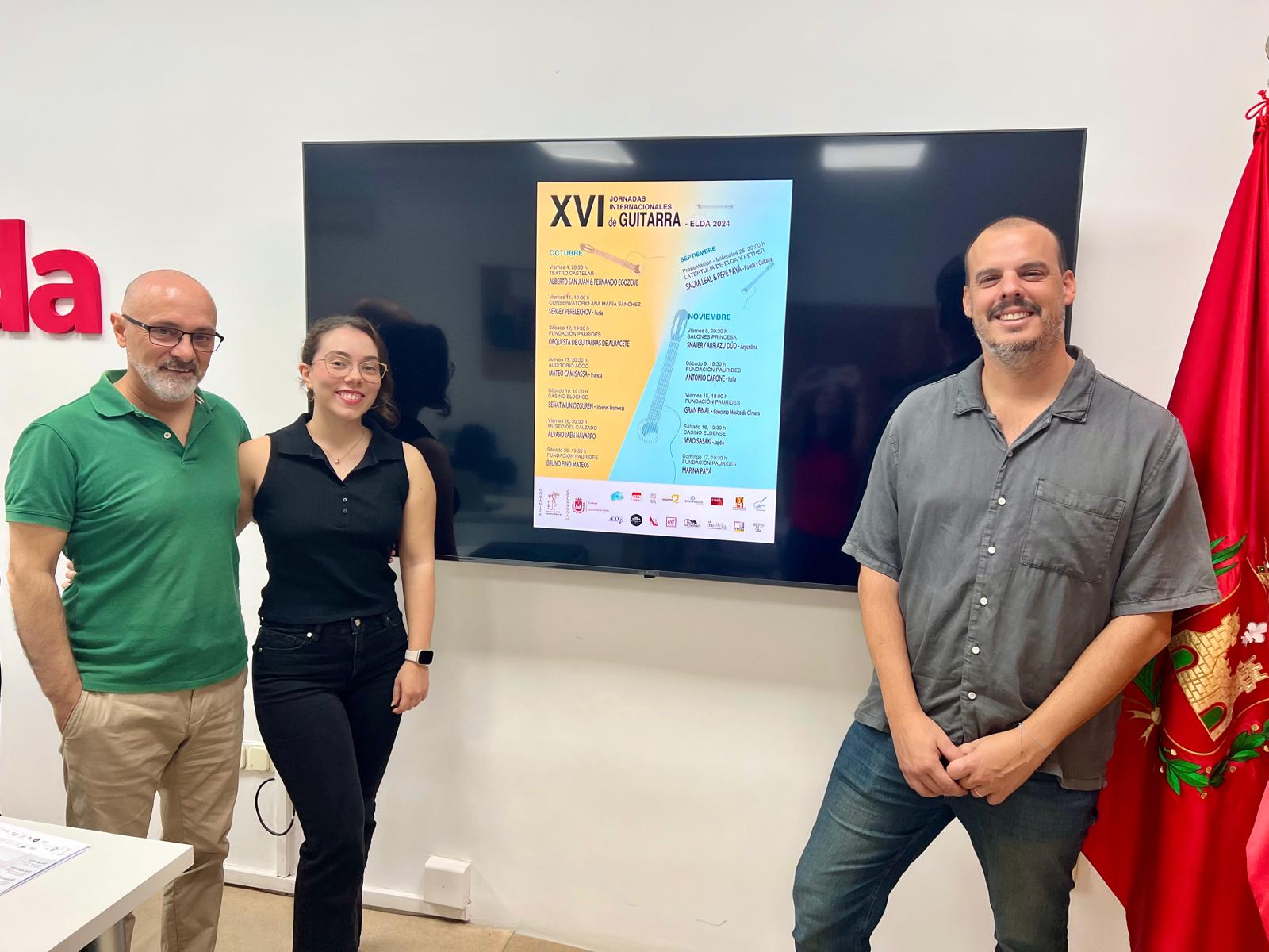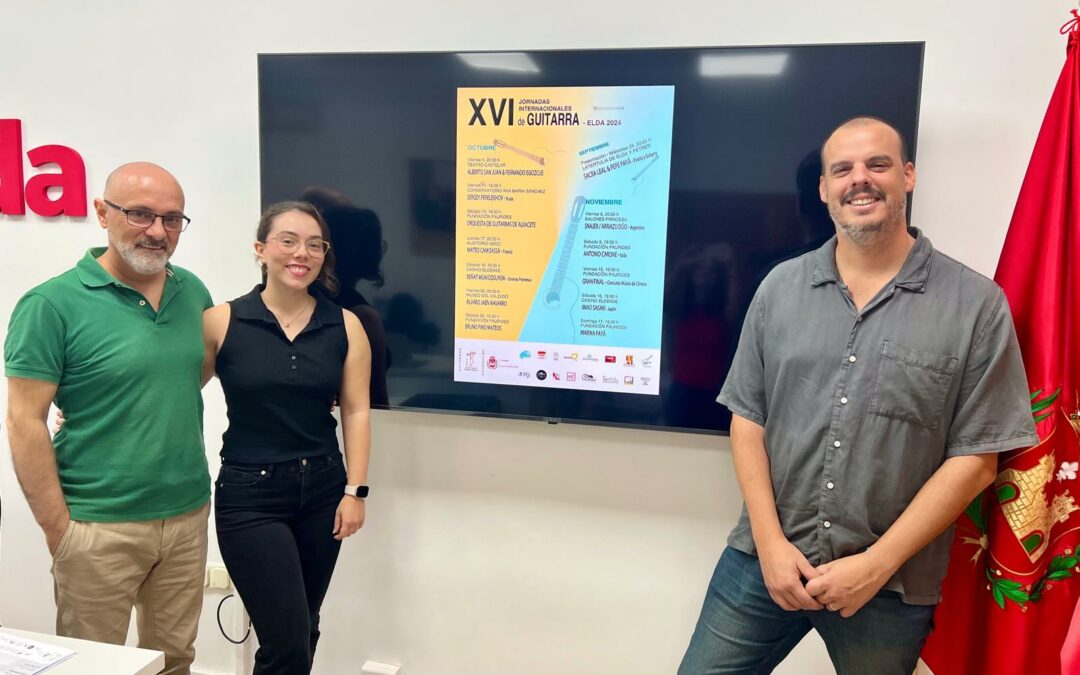 Vuelven a Elda las XVI Jornadas Internacionales de Guitarra. Durante los meses de octubre y noviembre los y las eldenses podrán disfrutar de diferentes conciertos variados con artistas reconocidos de todo el mundo. La inauguración será el 25 de septiembre en La Tertulia, a partir de las 20.00 horas, y contará con la participación de Sacra Real y Pepe Payá, quienes realizarán un recital de poesía y acompañamiento musical.