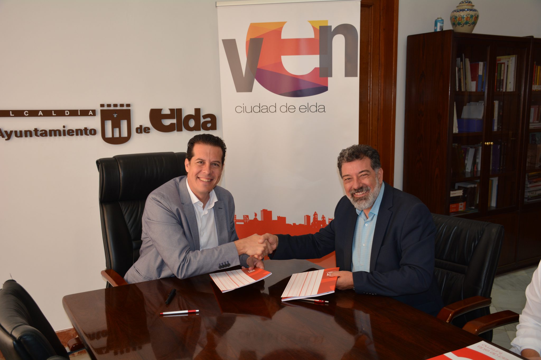 El Ayuntamiento de Elda y el CIPFP Valle de Elda han firmado esta mañana un acuerdo de colaboración para que los alumnos del Ciclo Técnico Superior en Guía, Información y Asistencia Turística puedan realizar prácticas formativas en las diferentes actividades organizadas por la concejalía de Turismo.