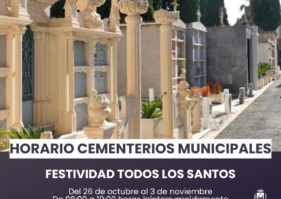 “Los cementerios municipales de Elda ultiman su puesta a punto para que toda la ciudadanía pueda visitar y rendir tributo a sus familiares, amigos y seres queridos en una fecha de gran importancia como es la festividad de Todos los Santos”, ha señalado el concejal de Espacio Público, José Antonio Amat, subrayando que “por ello, hemos querido nuevamente ampliar los horarios de apertura de ambos cementerios con varios días de antelación para ofrecer un mejor servicio a la ciudadanía y que puedan realizar los preparativos que estimen oportunos con mayor comodidad y disponibilidad horaria antes del próximo 1 de noviembre”.