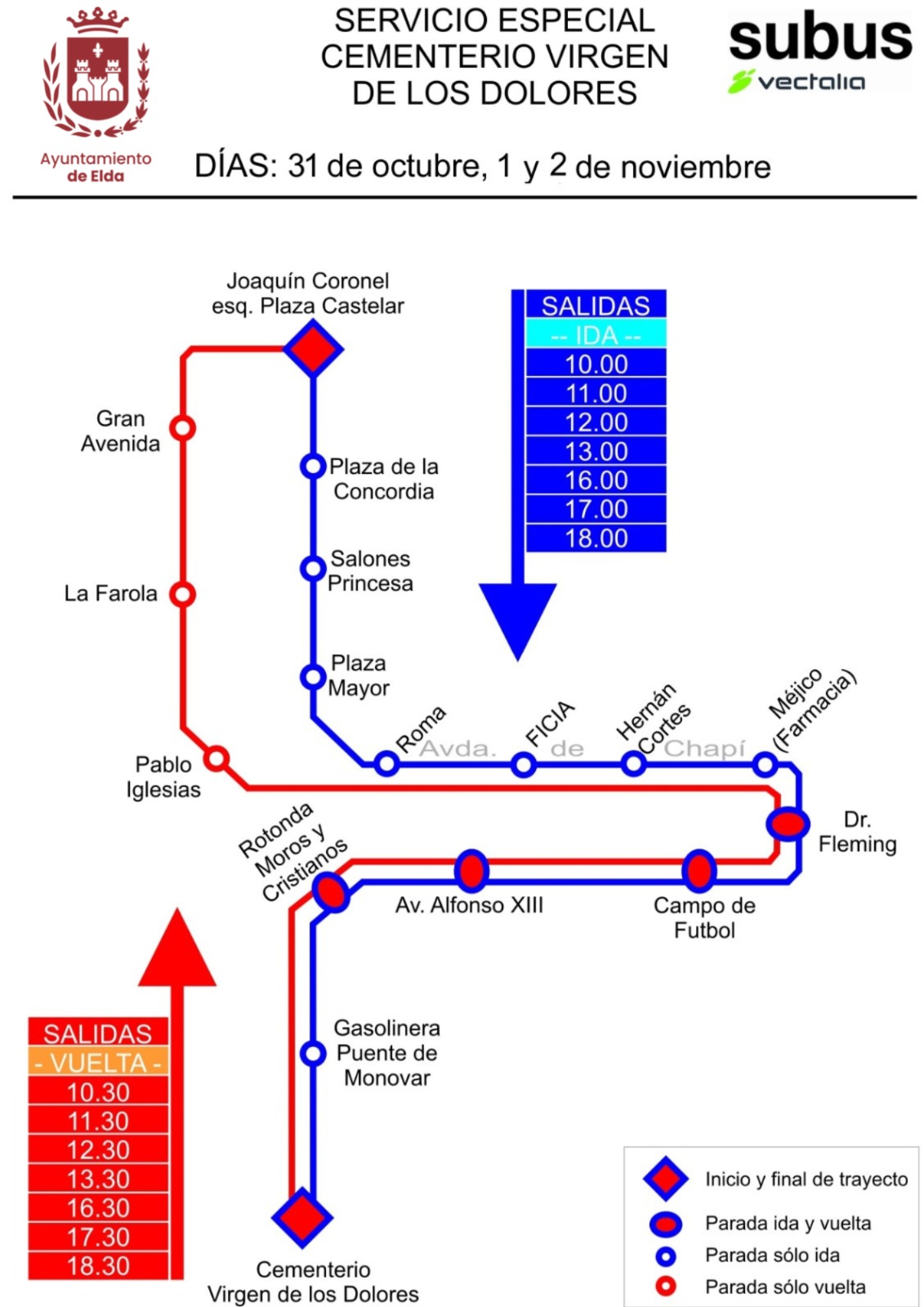 En cuanto al transporte público, la Concejalía de Transportes y Movilidad Sostenible ha habilitado un servicio especial de autobuses que permitirá la movilidad de todas aquellas personas que no pueden acudir a pie ni en sus vehículos particulares. Este dispositivo estará disponible del 31 de octubre al 2 de noviembre, ambos inclusive, con horario de salidas comprendidos entre las 10 y las 18 horas.