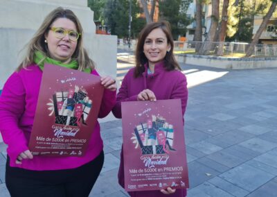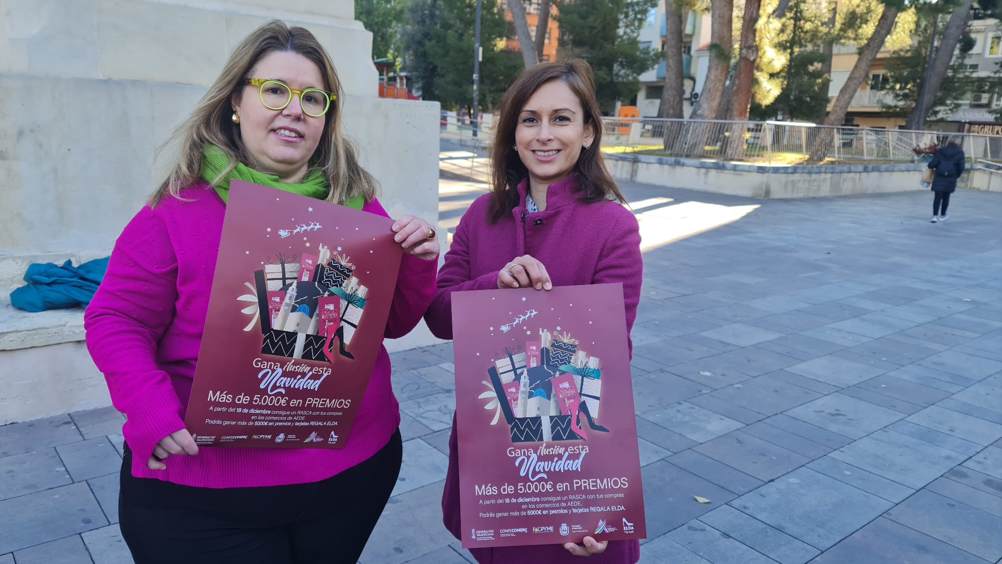 La concejala de Comercio y Mercados, Silvia Ibáñez, y en representación de la Asociación de Empresarios de Elda (AEDE), Rocío Vera, han presentado esta mañana la campaña ‘Gana ilusión esta Navidad’, una iniciativa que repartirá más de 5.000 euros en premios y con la que los establecimientos quieren premiar la fidelidad de sus clientes.