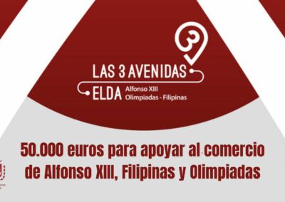 Los establecimientos comerciales de las avenidas Alfonso XIII. Olimpiadas y Filipinas disponen hasta el próximo 25 de junio para solicitar las ayudas incluidas en el Plan ‘Tres Avenidas’, puesto en marcha por el Ayuntamiento de Elda, a través del Instituto de Desarrollo Local de Elda (Idelsa). Hay que recordar que este paquete de ayudas tiene como objetivo paliar los efectos que pudieron tener en la actividad las obras de reurbanización llevadas a cabo en uno de los ejes comerciales más importantes de la ciudad.