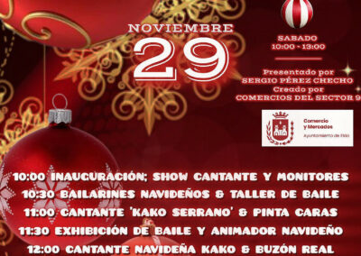 Sergio Pérez, que se encargará de presentar y coordinar el evento, ha afirmado que «el Sector 9 es una zona preciosa, que está creciendo mucho y en la que hay un gran número de comercios. Hemos preparado una jornada llena de actividades para todos los públicos, con música, bailes, talleres infantiles, pintacaras, regalos, sorpresas… Será un buen comienzo para que la gente comience la Navidad en nuestra ciudad».
