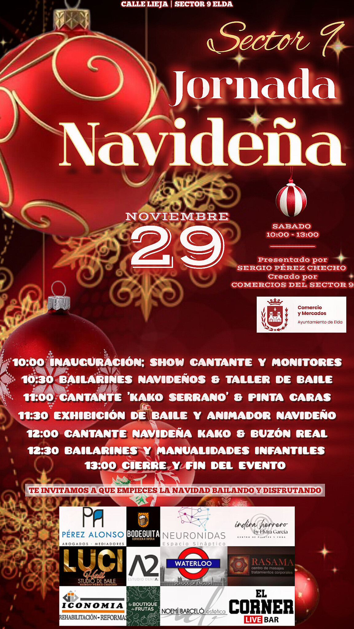 Los establecimientos comerciales del Sector 9 darán la bienvenida a la Navidad el viernes 29 de noviembre, un día después del encendido del alumbrado navideño. El Ayuntamiento de Elda, a través de la Concejalía de Comercio y Mercados, y los comercios de la calle Lieja han preparado una jornada de animación navideña con música, bailes y talleres infantiles.